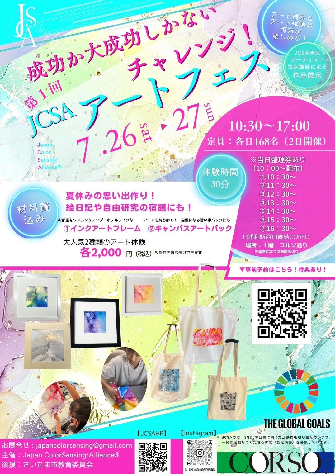 Events イベント情報ーJCSAイベント情報のご案内ー upcoming events 今後のイベント開催予定 レッスンに申し込む うらわ美術館展示制作クラス10月12日(日)13時~90分★残席2席 浦和第一クラス□JCSA公式クラスART9:ポーリングアート①ポーリング貯金箱うさぎ23㎝②ポーリングくま23㎝③丸キャンバス20㎝&くまキーホルダー10月26日(日)13時~90分★残席2名 浦和第三クラス□JCSA公式クラスART8:SEAアート①キャンバス20㎝②木製カメ③木製イルカ+2000円にて①~③制作可能です。お問い合わせください。11月30日(日)15時半~残席6名★浦和第三クラス□JCSA公式クラスART4:テクスチャーアート★20㎝木製パネル Past event report 過去のイベント開催実績 日本テレビ出演(2021年) 講師:理事 小林 内容:フレームアート制作ワークショップ 参加人数:90名 場所:田町 住友生命様 イベント 2023年~2024年 講師:理事 小林 内容:フレームアート、扇子、うちわ、お箸置き、アクセサリー他 開催回数:10回以上 場所:住友生命埼玉中央支社、南浦和雅支部 ニッケコルトンプラザイベント 2024年3月10日 主催:市川校 内容:フレームアート制作体験 参加人数:120名 永田町レジテンスマンションイベント 内容:ギャラクシーアート制作 講師:理事 小林 参加人数:12名 場所:某レジテンスマンション内(永田町) 越谷レイクタウン内TSUTAYA 2025年2月2日 内容:フレームアート制作体験 主催:越谷クラス 場所:越谷レイクタウン 明治安田生命川越支社 2025年3月7日 内容:インクアート・レジンアートワークショップ 講師:理事 小林 参加人数:25名 デヴィ夫人贈呈依頼作品 2024年10月 デヴィ夫人プレゼントご依頼担当 他多数 清水寺 2024年11月 世界遺産を巡るプロジェクト 藝展 京都|清水寺 シェーンブルン宮殿 2025年3月15日~18日 ウィーン|シェーンブルン宮殿展示 オルセー国際芸術賞 2025年4月美術の杜作品掲載 オルセー国際芸術賞受賞 Copic × AlcoholeInkART mini作品展 2022年 Copic×AlcoholeInkART mini作品展 新宿オカダヤ本店 掲載 上野の森美術館 2023年全国選抜作家展 東京|上野の森美術館 光文社様 STORY 2025年光文社様 STORY 第一回JCSAアートフェス 2025年 浦和コルソ 第一回JCSAアートフェス 事前予約190名 合計255名の方が体験してくださいました。 XXX XXX イベント開催を相談する ※ 企業様、学校様、施設様など、出張講師のご相談をお待ちしております。 application イベント参加のお申し込み気になるイベントを見つけたら、ぜひご参加ください。企業様、学校様、施設様など、出張講師のご相談をお待ちしております。以下のフォームより参加申し込みいただけます。 このフォームに入力するには、ブラウザーで JavaScript を有効にしてください。Name *Email *Application Form *NameSubmit まずはおすすめのクラス相談をしませんか?“アート”で変わる。“成功”か”大成功”しかない道へ。JCSAでは、’色’Color の力により、個々の”センスSensing”を引き出します。 Contact